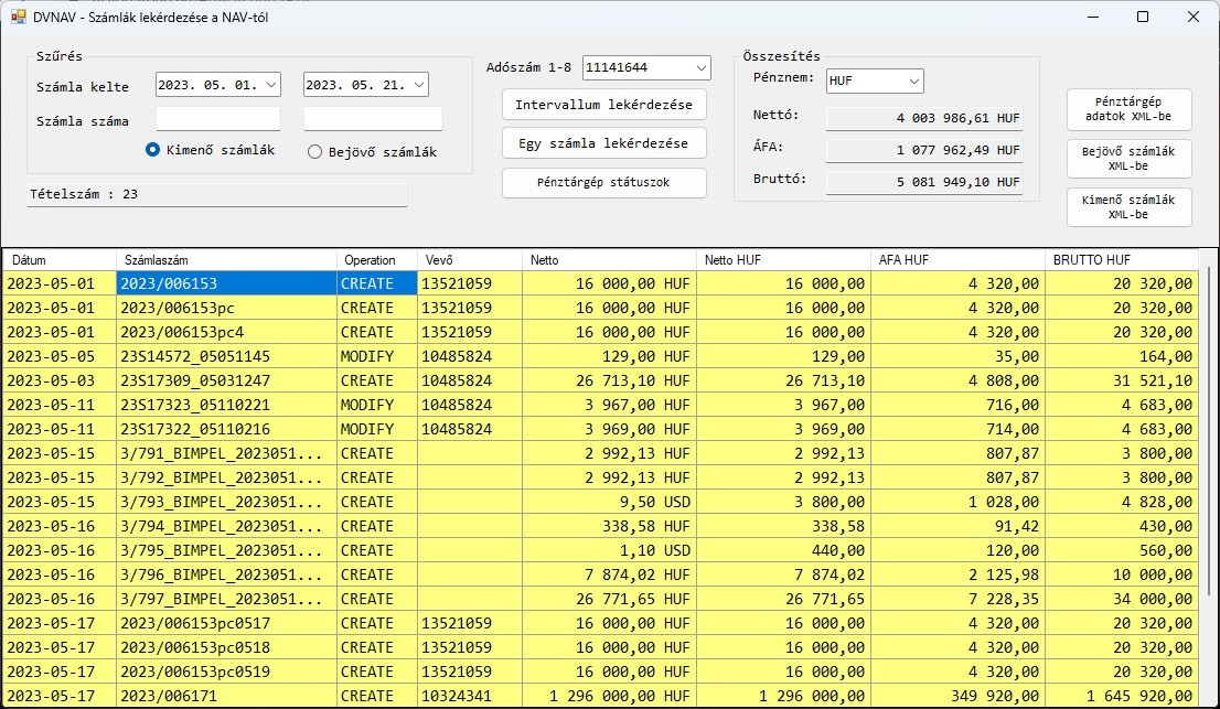 Egyúttal a DVPSZ-t és a DVBOOK-ot felkészítettük a cég által kiállított összes számla lekérésére is.