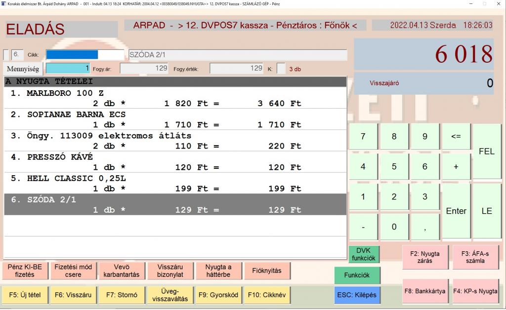 Értékesítés vonalkódos, gyorskódos, NDN kóddal vagy névszerinti azonosítással